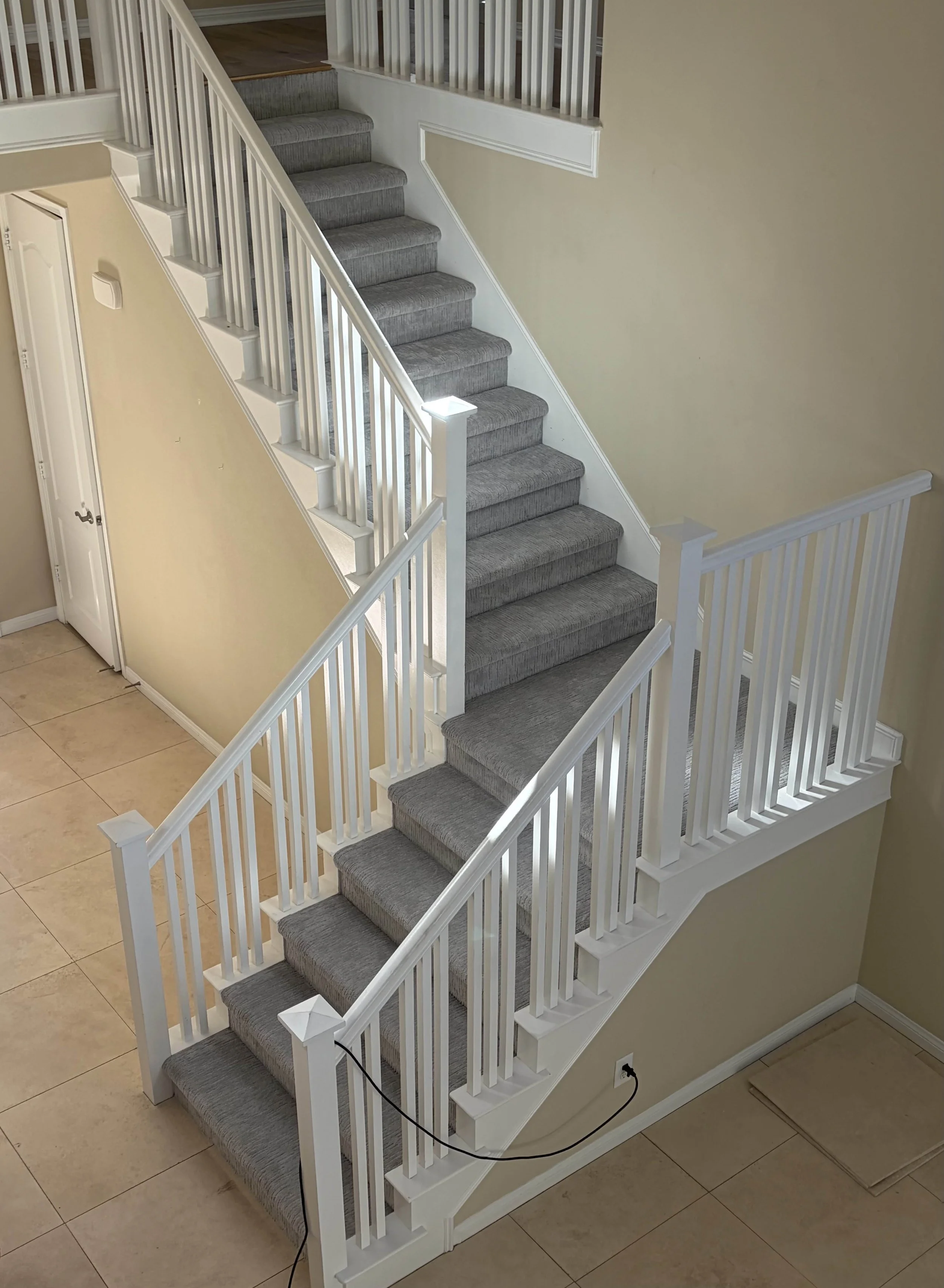 Process: Carpet padding is installed first, followed by stretching and securing the carpet wall-to-wall. Seams are carefully joined and edges are trimmed for a smooth finish.
